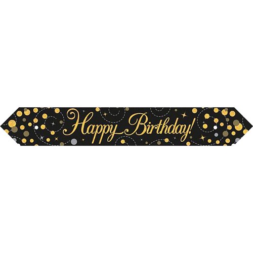 Alpen Foil Banner Happy Birthday Sparkling Fizz 2.7m Black And Gold