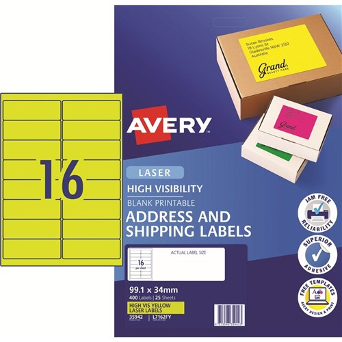 Avery High Visibility Shipping Laser Fluoro Yellow L7162FY 99.1x34mm 16UP 400 Labels