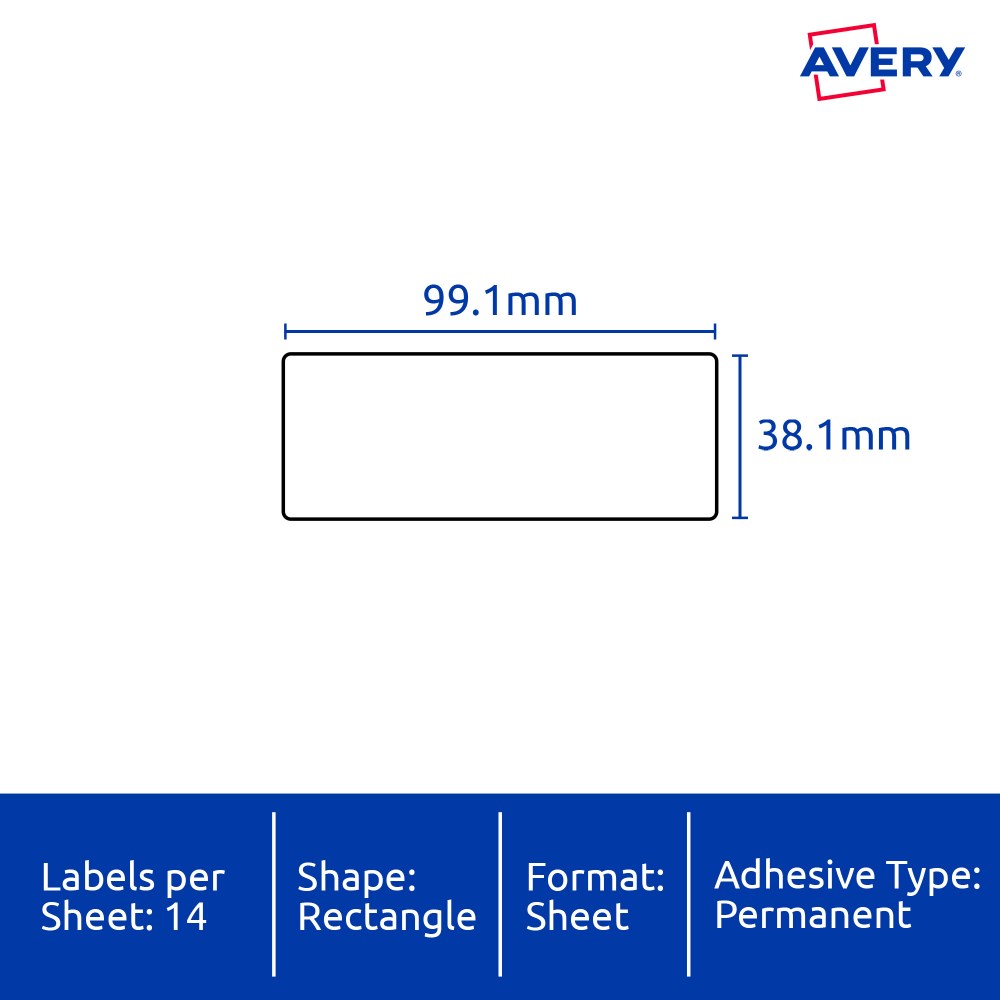 • Size: 99.1x38.1mm 350 labels, 25 sheets. 14 labels per sheet (14UP).