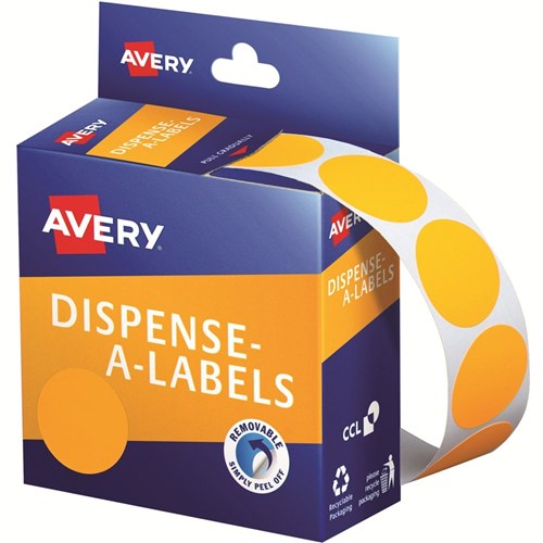 Avery Removable Dispenser Labels 24mm Round Fluoro Orange Pack Of 350