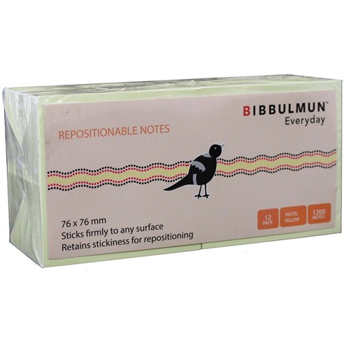 Bibbulmun Everyday Sticky Notes 76 x 76mm Yellow 100 Sheets Pad Pack of 12