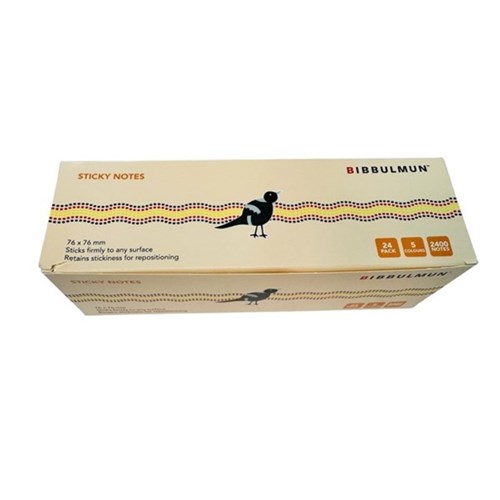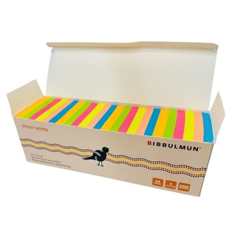 Bibbulmun Sticky Notes 76 x 76mm Assorted Bright Colours Pack Of 24