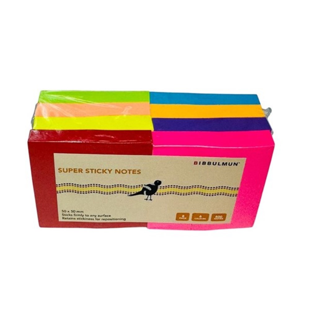 Bibbulmun Super Sticky Notes 50 x 50mm Assorted Pack Of 8