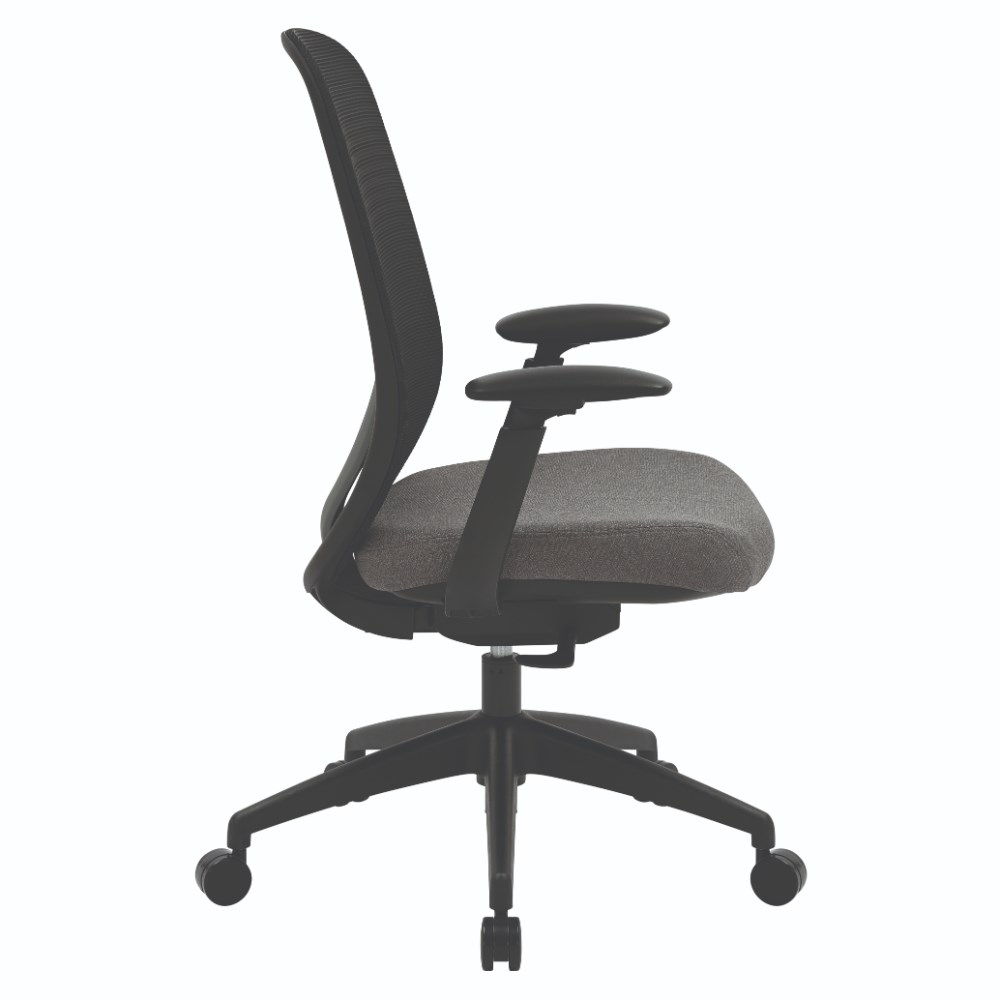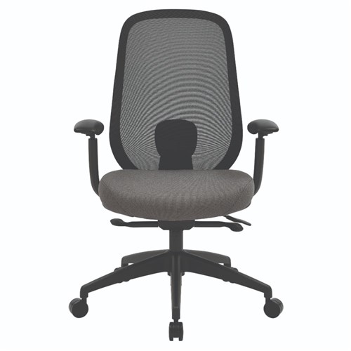 Buro Force High Back Office Chair + Arms Black Frame Grey Fabric Seat Mesh Back