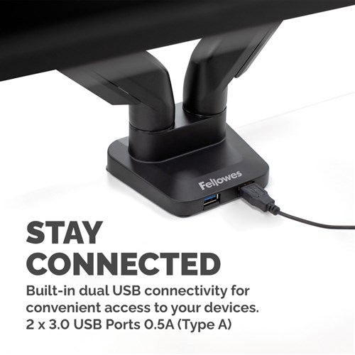 • 2 x 3.0 USB ports 0.5A (Type A0) built-in located at the base of the product makes it easy to connect your favourite devices.