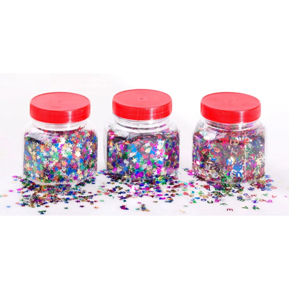 Jasart Glitter Scatters 100gm Jar Alphabet Assorted Colours