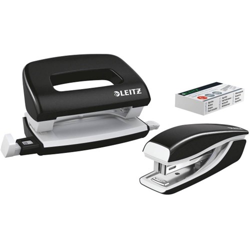 Leitz Nexxt Wow Stapler And 2 Hole Punch Set 10 Sheet Capacity Black