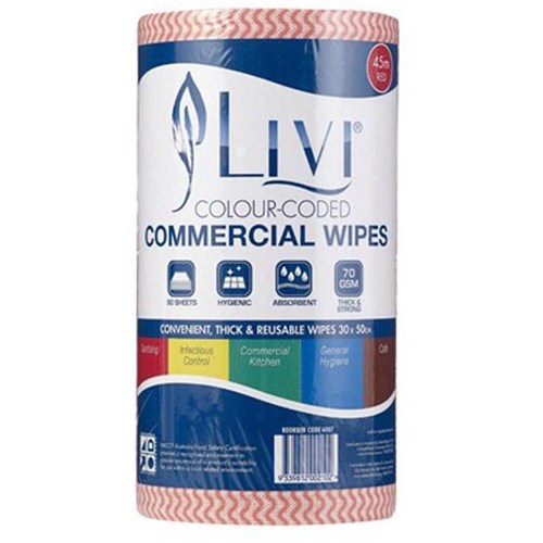 • Livi Essentials Commercial Wipes 90 Sheets Red Carton Of 4