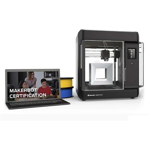 • It includes 1 Sketch printer, 2 spools PLA, 1 starter spool Grey PLA, 2 build plates, 1 teacher and 5 student MakerBot certification program.