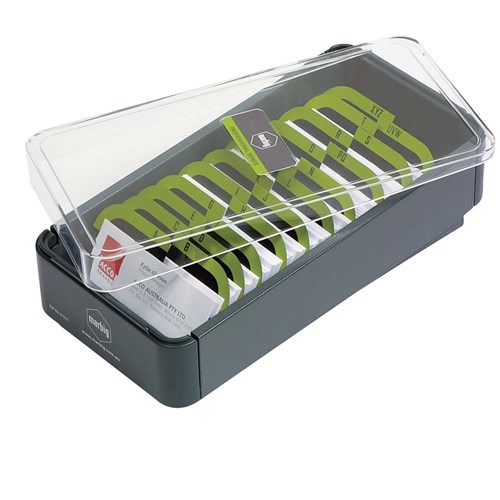 Marbig Professional Series Business Card Filing Box 400 Capacity Grey And Lime