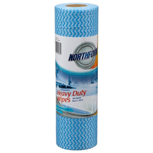 • Northfork Antibacterial Heavy Duty Wipes Roll 50 Sheets Blue