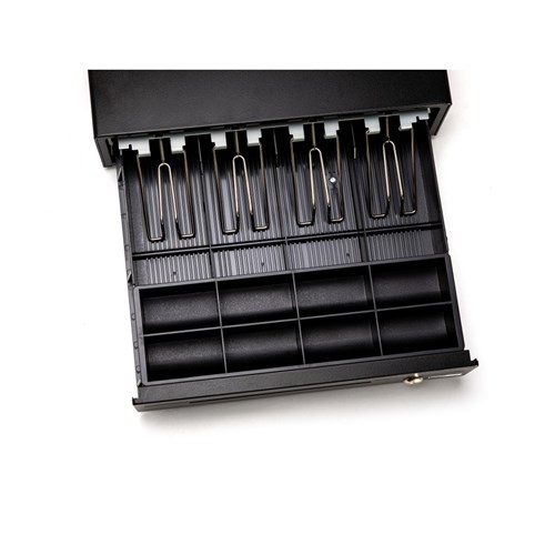 • The cash drawer is a classic black colour.