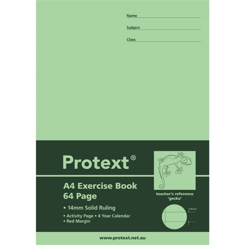 Protext Exercise Book A4 64 Page 14mm Solid Ruled With Margin Gecko