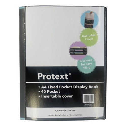 Protext Fixed Display Book A4 40 Pocket Insertable Cover And Spine Black