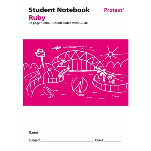 Protext Student Note Book 250 x 175mm Doubled Ruled 6mm With Guide 32 Page Ruby