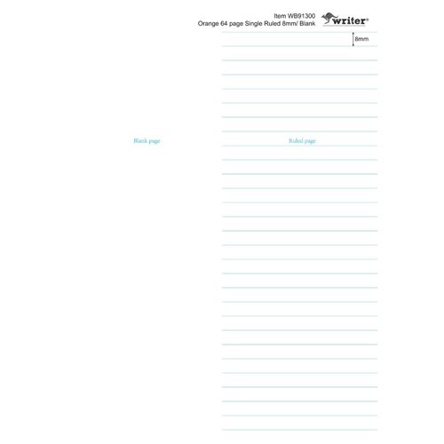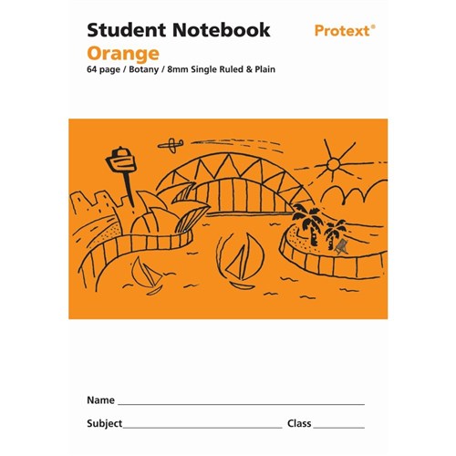Protext Student Note Book 250 x 175mm Single Ruled 8mm/Plain 64 Page Orange