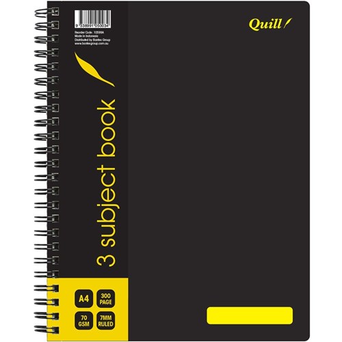 Quill Subject Book A4 3 Subject 7mm Ruled 70gsm 300 Page Black