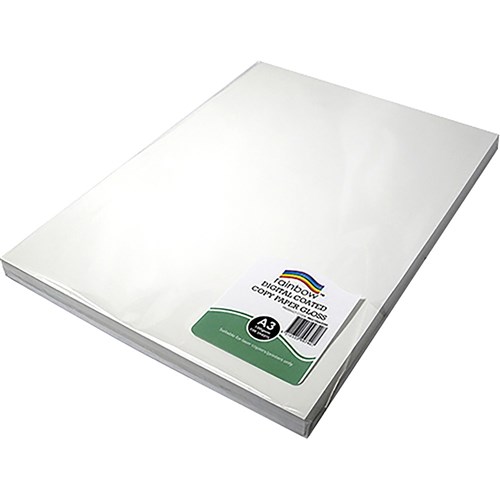 • Rainbow Gloss paper is available in A3 and A4 sizes and an array of weights.