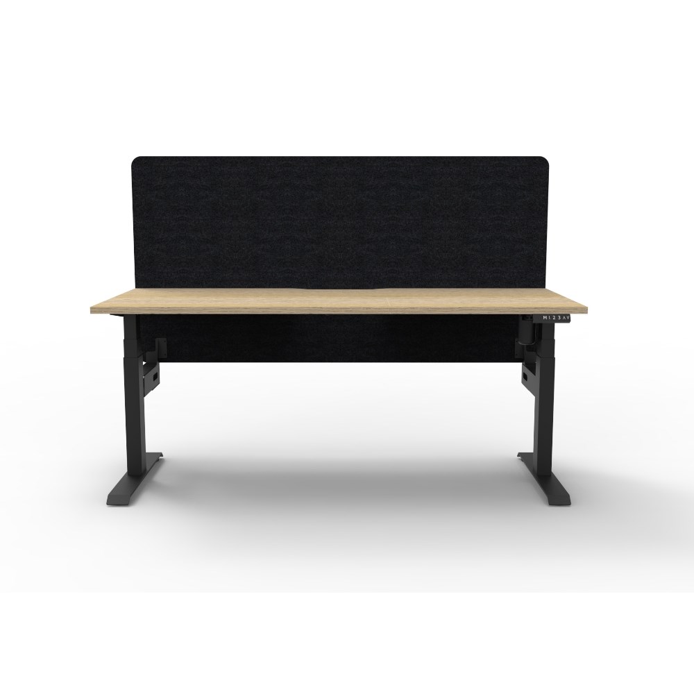 • Electric height adjustable single sided workstation with Natural Oak top and Black Satin frame, Black Eco screen.