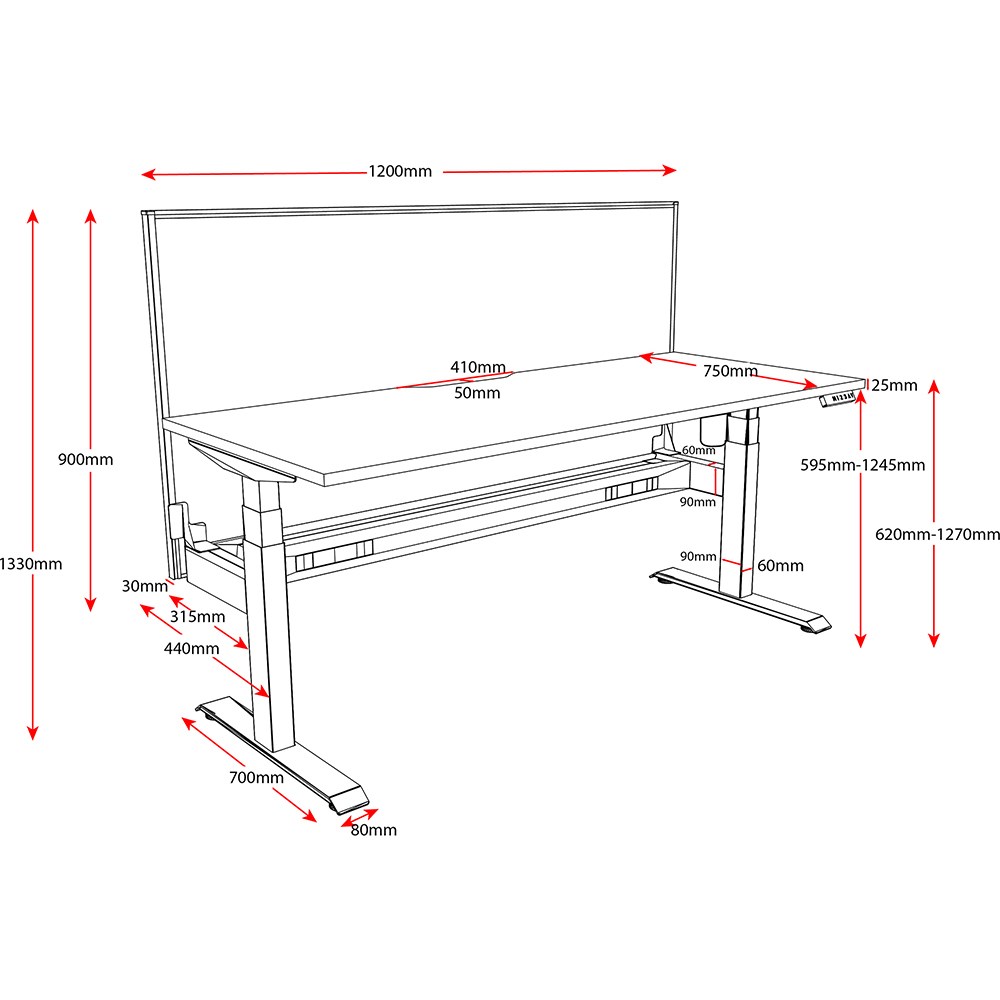 • Unit Dimension: 1200mm W x 750mm D x 620-1270mm H.