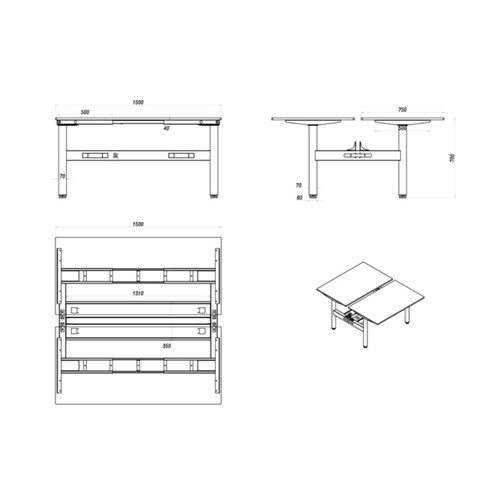 • Desk Per User Dimensions: 1500W x 750D x 730mmH. Height With Screen: 1330mm.
