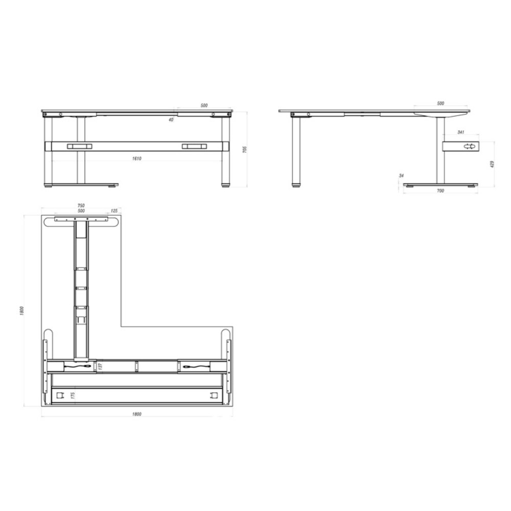 • Natural White top Black Satin frame. Corner workstation with cable tray.