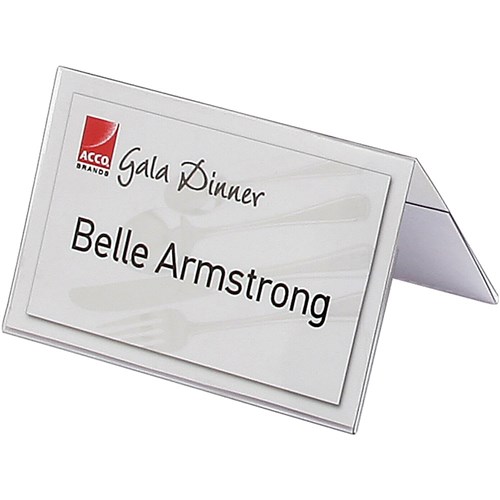 • Clear plastic name plates with insertable cards to display titles, names etc.