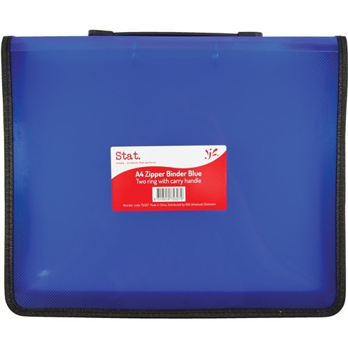 Stat A4 2R Zipper Binder With Handle 25mm Blue and Clear