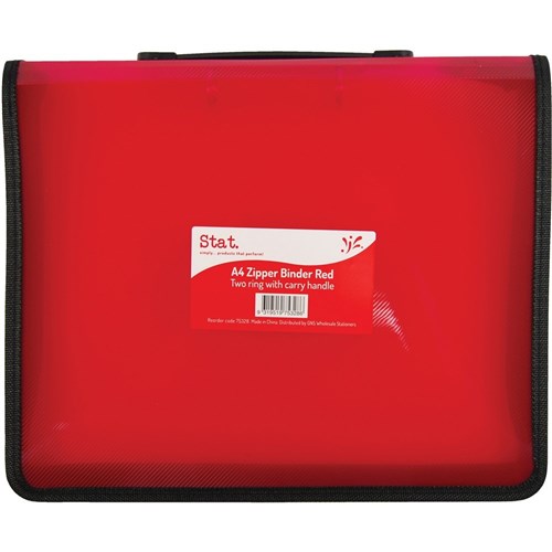 Stat A4 2R Zipper Binder With Handle 25mm Red