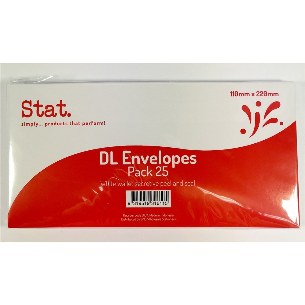 Stat Peel And Seal Envelope DL Secretive White Pack of 25