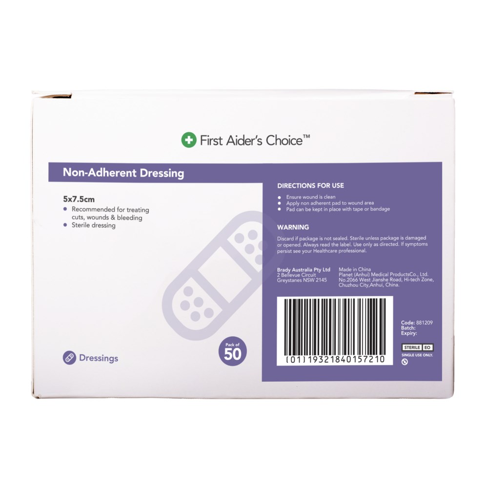 Trafalgar First Aider's Choice Non-Adherent Dressing 5 x 7.5cm White Box Of 50