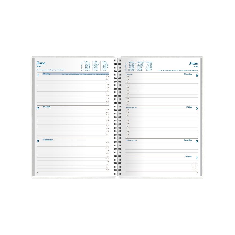 • The week to opening format allows scheduling of family events and appointments at a glance.