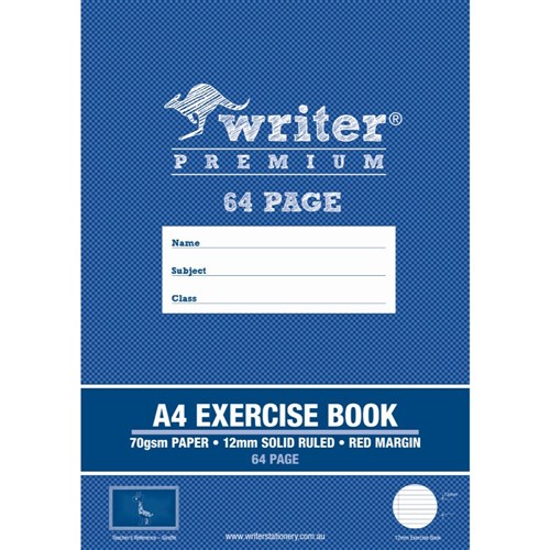 • Writer Premium Exercise Books feature heavy duty covers, high quality white 70gsm paper.